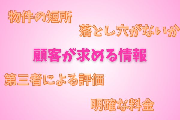 詳細な情報を提供して、落とし穴が存在する余地を極力減らすことと、都合の良い情報だけを提供するのではなく正直さがほとばしるトーンで物件情報を伝えることが肝要です(そのためには本心から正直である必要があります)